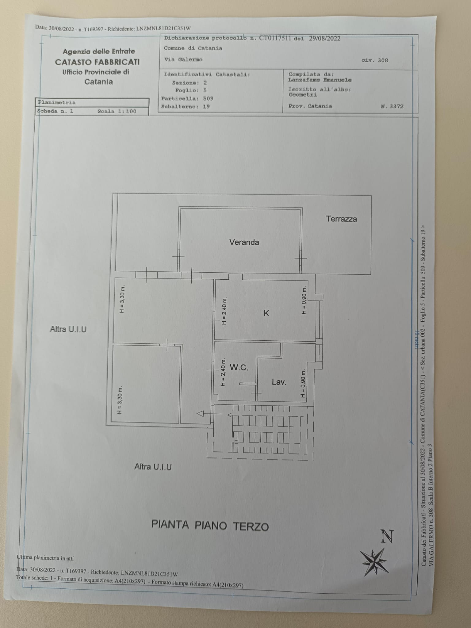 IL TUTTO PER UN TOTATALE DI SUPERFICE CATASTALE DI MQ 97 .