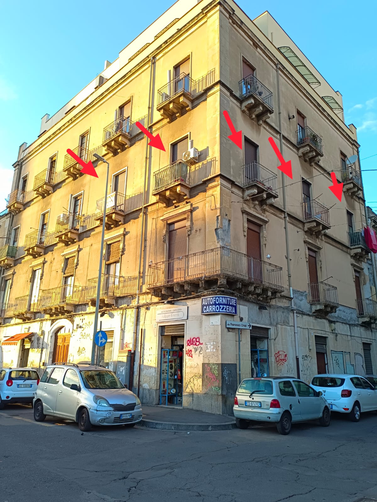 STUDIO IMMOBILIARE CANNAVO' PROPONE IN VENDITA A CATANIA IN ZONA CENTRALE A DUE PASSI DALLA STAZIONE CENTRALE, PIAZZA DELLA REPUBBLICA E PIU' PRECISAMENTE IN VIA ARCHIMEDE ANGOLO VIA COLAJANNI NAPOLEONE, IN UN PALAZZO D'EPOCA COMPOSTO DA 10 UNITA' ABITATIVE. L'IMMOBILE OGGETTO DI VENDITA SI TROVA AL SECONDO PIANO CON ASCENSORE ED E' COSI' SUDDIVISO: INGRESSO SU DISIMPEGNO, CAMERA DA LETTO E CAMERETTA ENTRAMBE BALCONATE CON AFFACCIO SULLA STRESSA VIA, SOGGIORNO, DUE CAMERE BALCONATE SU VIA COLAJANNI NAPOLEONE, PICCOLA CUCINA ANCH'ESSA BALCONATA CON AFFACCIO INTERNO, UN PIANO AMMEZZATO DI CIRCA 8 MQ PIU' BAGNO PER UN TOTALE DI UNA SUPERFICIE CATASTALE DI 161 MQ ESCLUSO AREE SCOPERTE.